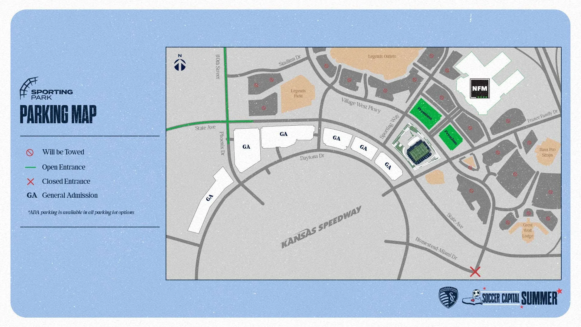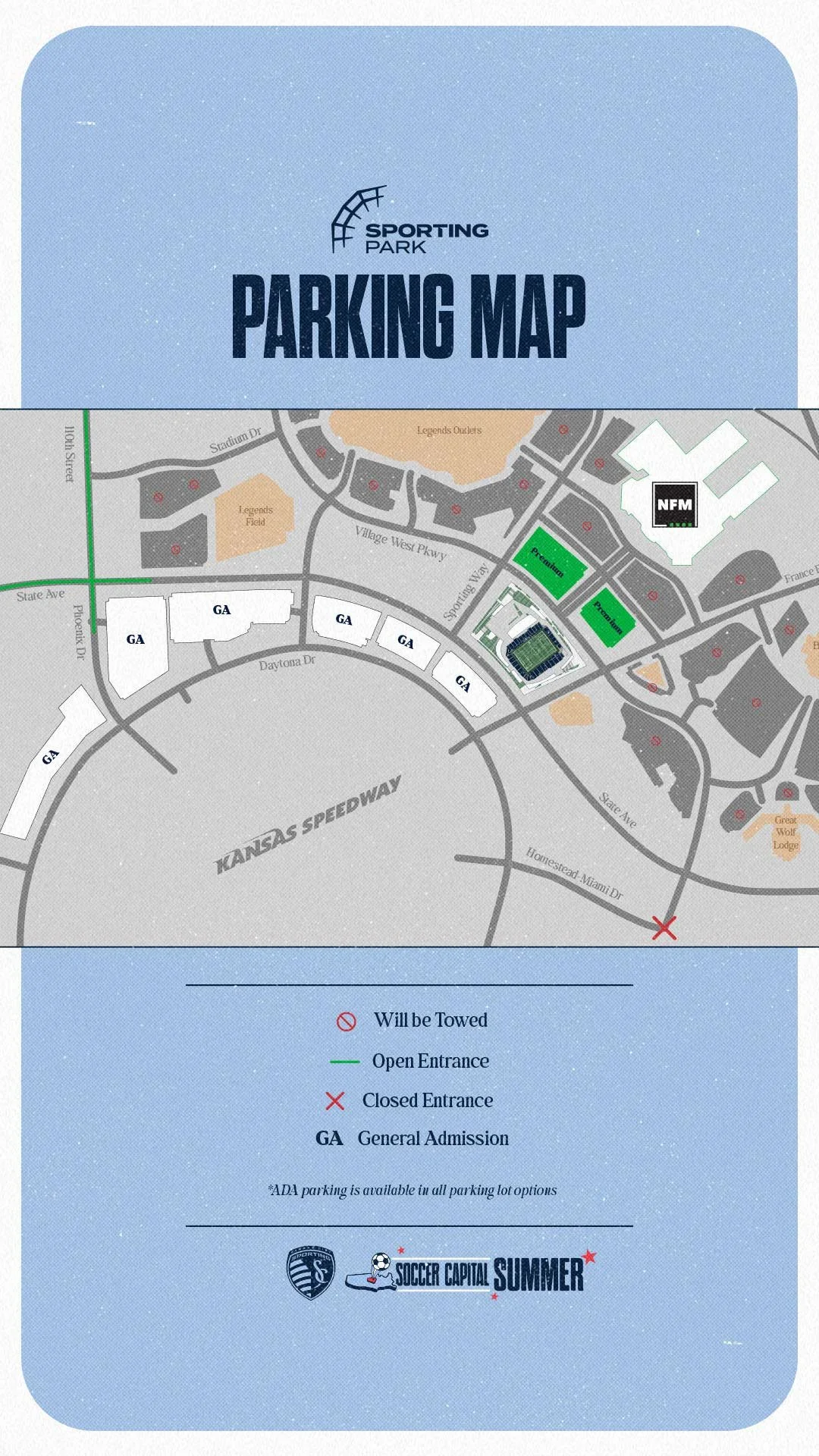 Paid parking will be required to attend Soccer Capital Summer events, with no re-entry allowed. Save on parking by purchasing before day of event. Parking entrance will be located at State Avenue and 110th Street. Have pass ready upon entry.